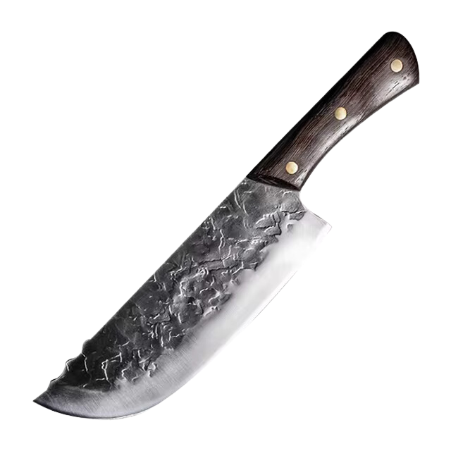 Premium High-Carbon Steel: Crafted from high-carbon steel, these knives retain sharpness for longer and provide exceptional edge retention. The rugged, hammered texture not only adds a touch of artistry but also minimizes food sticking to the blade.